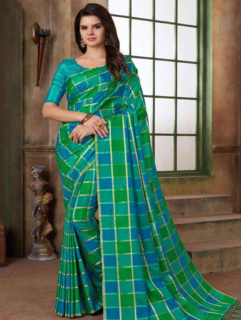 - » dual tone checkered printed saree