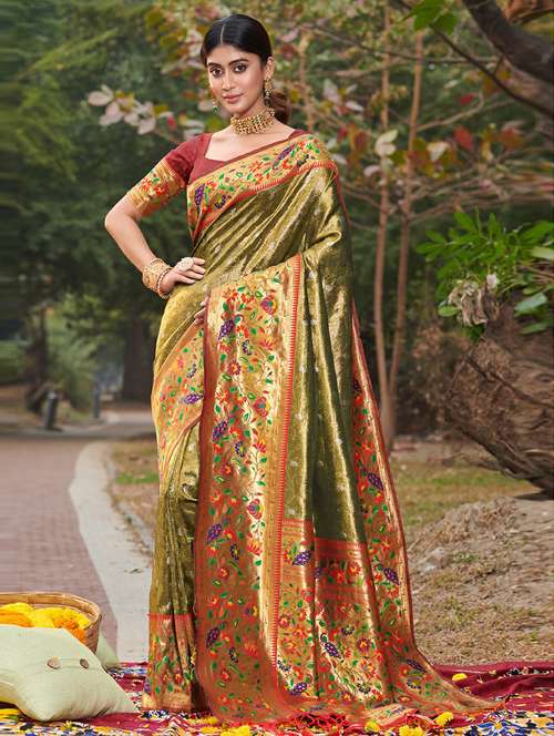 SANGAM PRINTS brings to you this saree which is made from Paithani Silk fabric and is available in attractive colours. The saree is a suitable amalgamation of style with the grace that is required from an ethnic wear. You can wear it to casual occasions as well as make it a part of your festive wear.The saree comes with a 80 cm separate blouse piece which is of the same shade as that of saree. It is unstitched and can be altered according to your desired style and fit.Pair this saree with a clutch and a pair of fashion sandals or any casual footwear of your choice for a casual look when dressing up for a party. You can also pair it with a pair of earrings and bangles when adorning this outfit for a festive occasion. SANGAM PRINTS Sarees For Women With Blouse. This Is Saree For Women. Saree Length Is 6.30 Mtr Including Blouse Piece. Blouse Is Unstitched Fabric And 0.80 Meter. This Saree Looks Beautiful In Evening Parties.