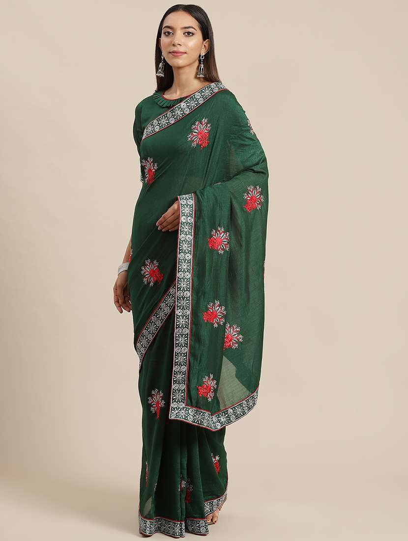 SERONA FABRICS Designer Sarees Saree Fabric : Vichitra Silk, Blouse Fabric : Vichitra Silk Saree Pattern : Vichitra Silk Floral Embroidery Work Exclusive Party Wear Saree Dimension : Saree - 5.5 Meters , Blouse - 0.8 Meters Pack of : 1 Saree : 1 Blouse This Vichitra Silk Saree Concept Has Been Made By SERONA FABRICS Designer For Wedding.! Festival.! Party.! Casual.! Engagement..! Or Any Occasion Which Will Add Glamour To Your Beauty.