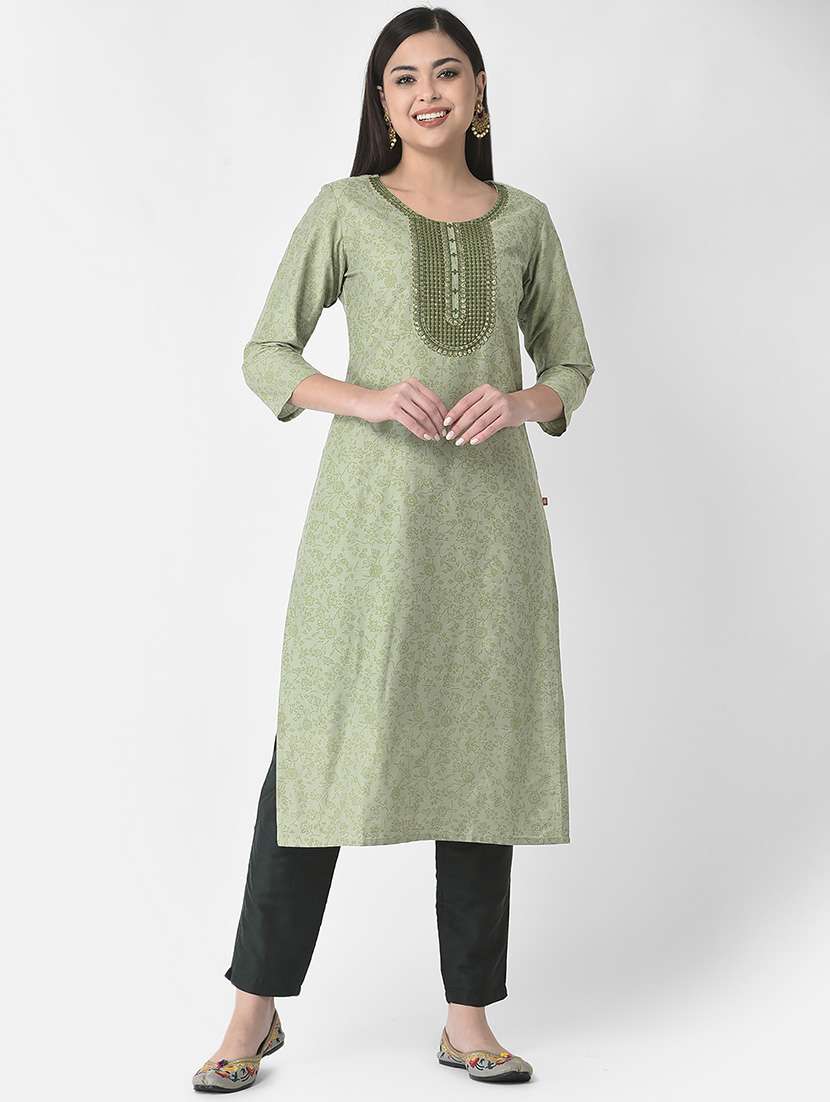 • Grab this beautiful kurta made up of silk fabric featuring round neck designs.