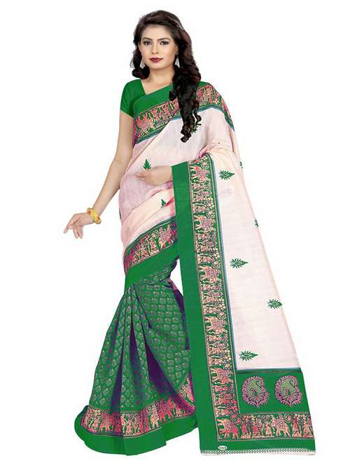 - » women's self design green colored saree