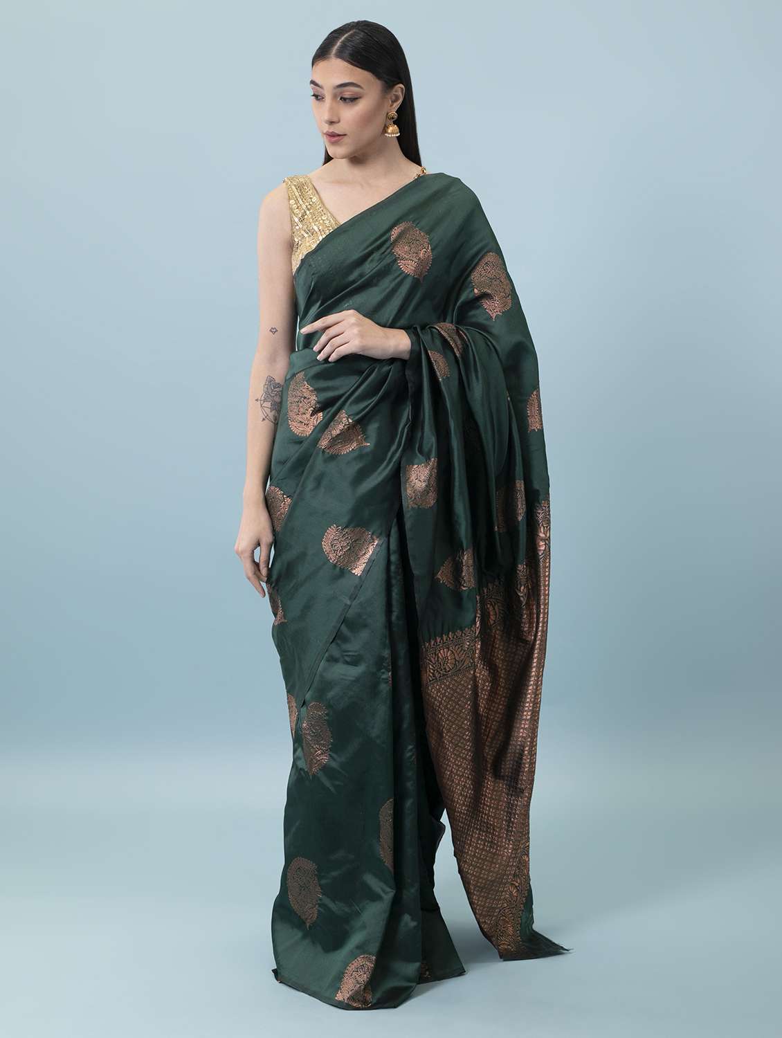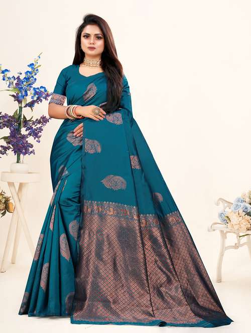 Vedant Vastram offers Litchi Silk Banarasi & kanjivaram Silk Saree. Saree have beautiful Jacquard Work with alluring pattern at enitre saree it creats look like Copper Zari Woven saree With woven Design. Material of this saree and Blouse is Lichi Silk which is softer and skin friendly. Size Of saree is 6.3M Including Blouse Piece. These new traditional designer saree for women can be used as party wear saree, Festival saree, wedding saree & Casual Wear Saree also. Product colour may slightly vary due to photographic lighting sources or your monitor settings.