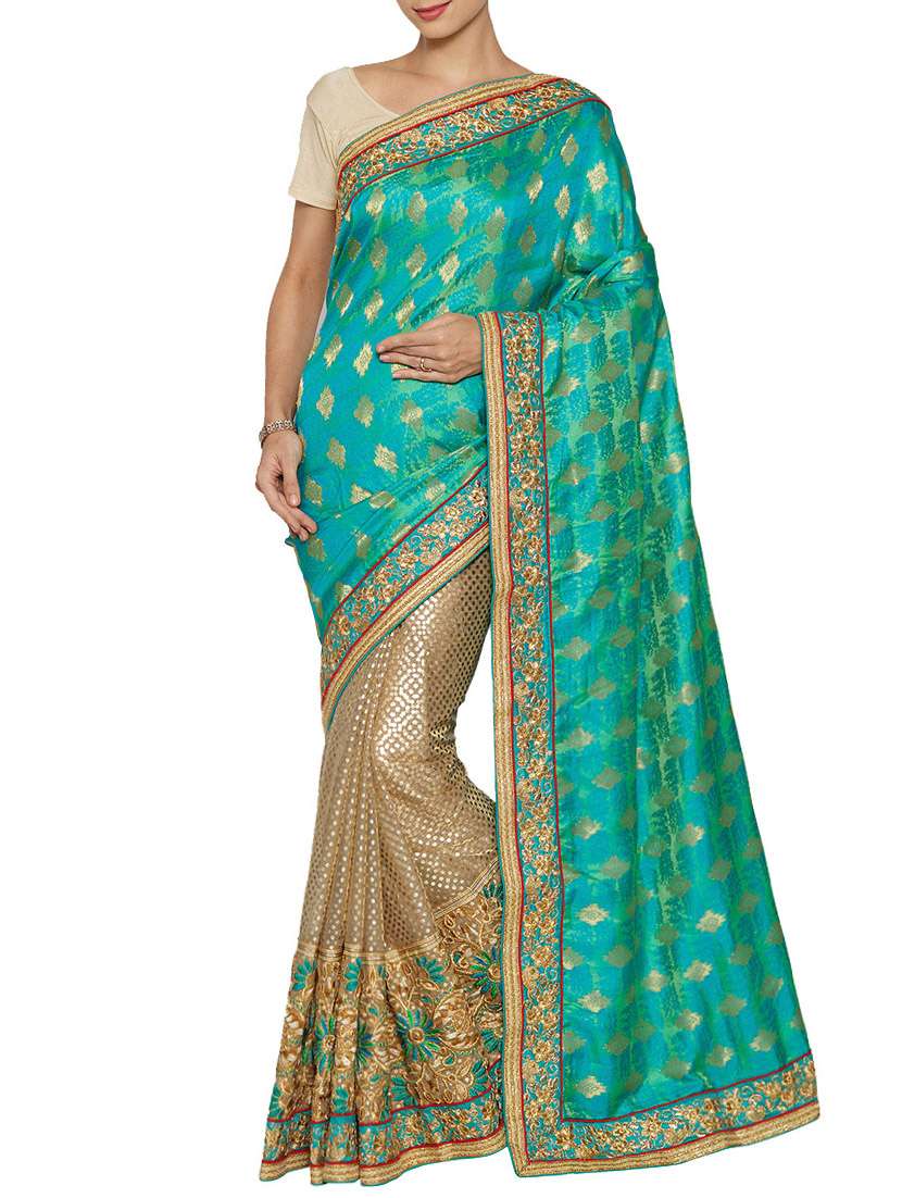 - » green & beige half and half saree with blouse