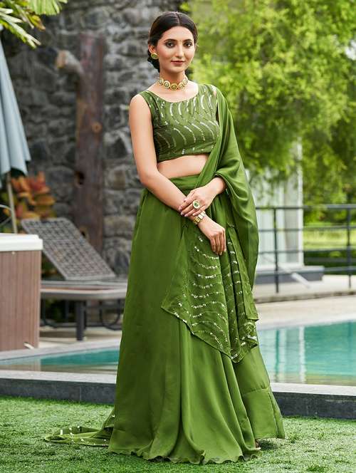 - Are you ready to adorn some alluring lehengas this season? Well, gear up to look gracious as LimeRoad brings to you the most magnificent collection of lehengas from WARTHY ENT and in green colours.