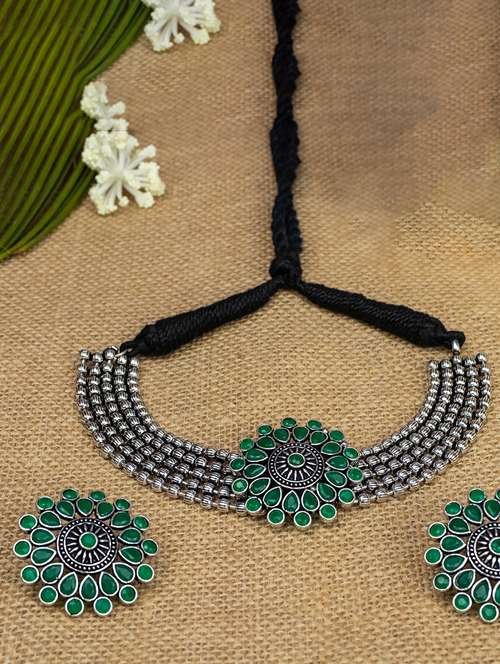 - » green oxidised silver necklace with earring