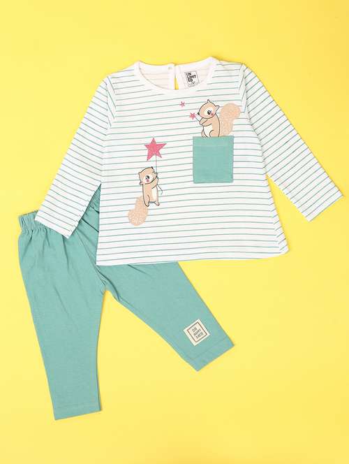 - Browse through the huge collection of casual wear twin sets and jump suits for girls in green colors and designs to make your young lady look the fashionista that she is.