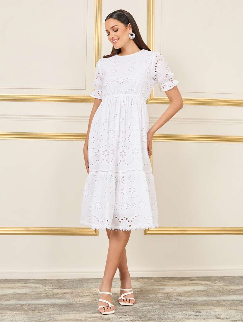 - » women white schiffli tiered dress