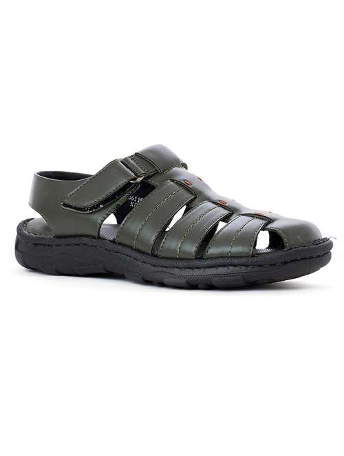 green synthetic & mesh back strap sandals