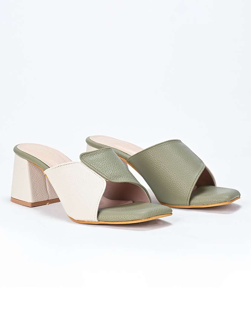 green synthetic slip on sandals