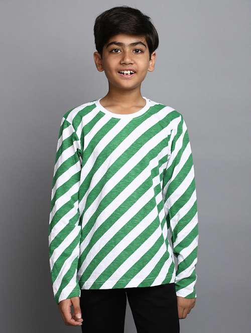 Green T-shirts can be worn as undershirts, are now worn frequently as the only piece of clothing on the top half of the body, other than possibly a brassiere or, rarely, a waistcoat (vest). T-shirts have also become a medium for self-expression and advertising, with any imaginable combination of words, art and photographs on display. Boys get a variety of cartoon t-shirts and superhero printed t-shirts according to the trends. A Printed Slogan T-shirt is a T-shirt bearing a design, image or lettering on it. Printing is done with textile printing. Various types of printed T-shirts exist. Nowadays these t-shirts are much in fashion and demand. In today's meme world, printed slogan t-shirts with a funny meme content written on it is a part of almost every man's wardrobe. Funny as well as motivational printed T-shirts are available. Motivational and inspiring or a sarcastic quote written on the T-shirt is the choice of youngster boys.