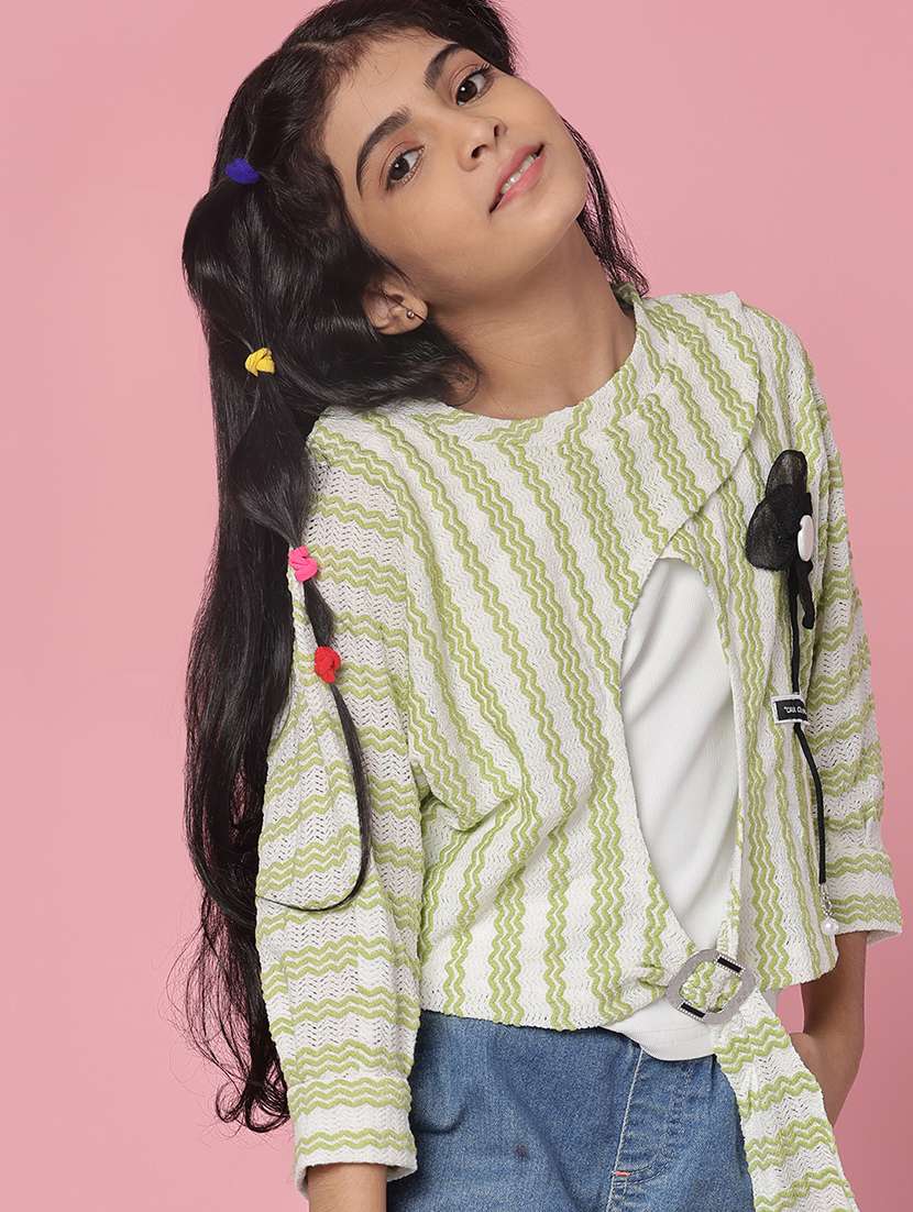 girls striped three quarter sleeve top
