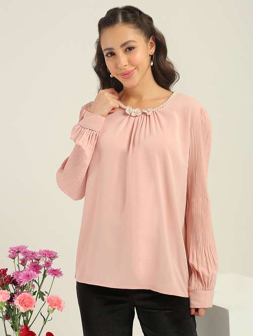 - Opt for this top made up of polyester material and get it in a varied neck design.