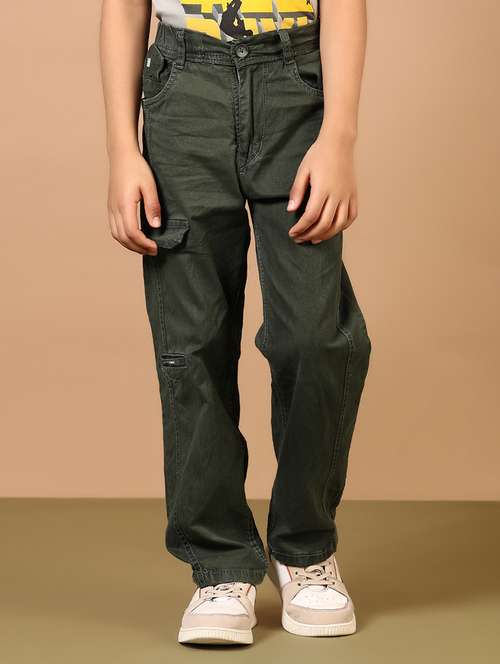 boys solid mid rise relaxed fit cargo