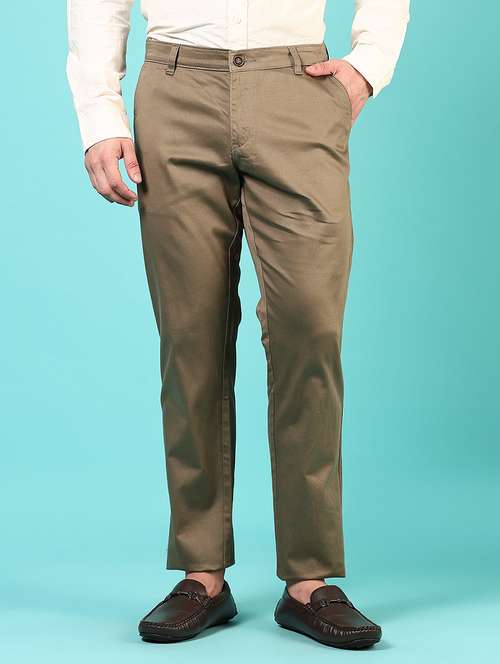 - » men mid rise solid flat front casual trouser