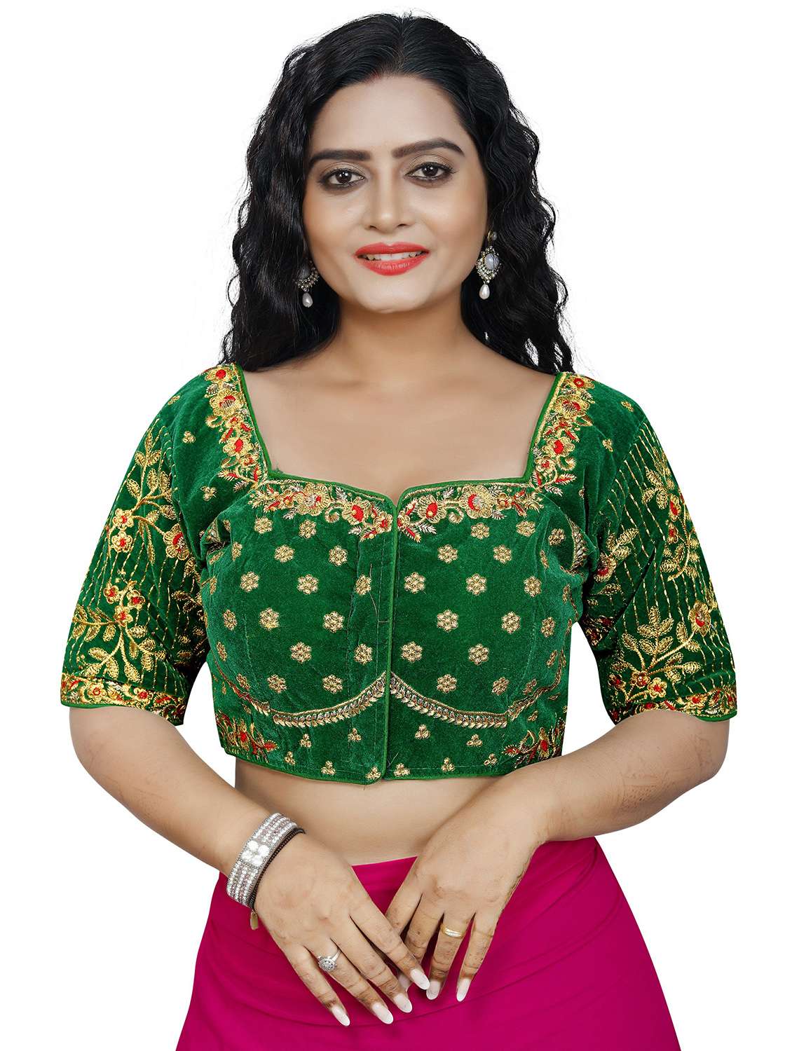 green embroidered blouse