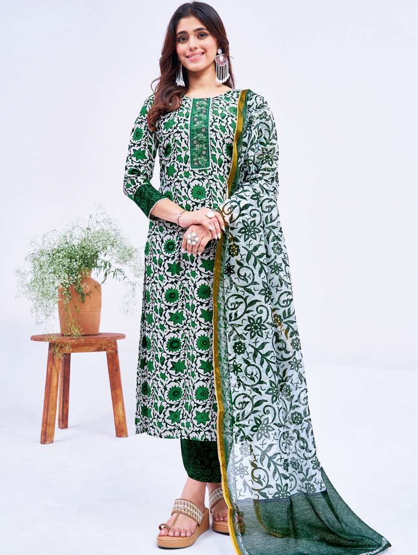 - Find gorgeous sets of ethnic wears in trending designs in green colors suitable for casual wear of occasions.