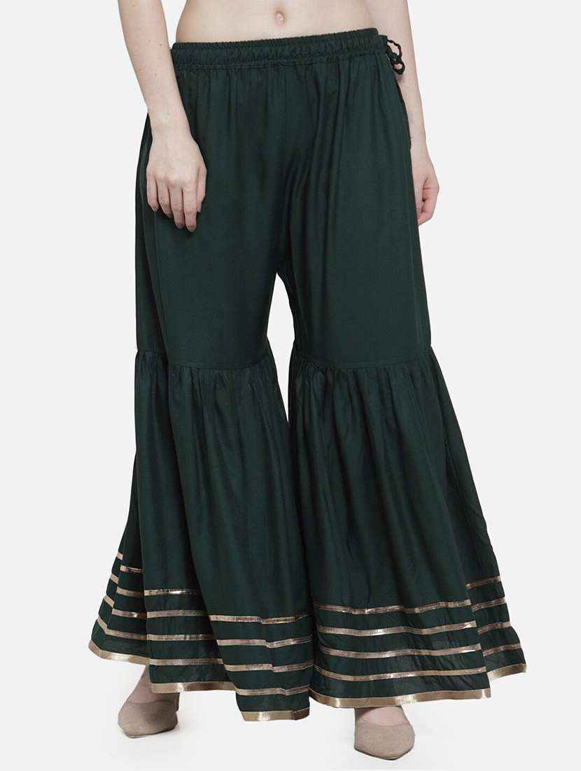 - Find a versatile collection of shararas in bottle green colours and viscose fabric that not only gives an outstanding rich look but also ensures breathability and comfort.