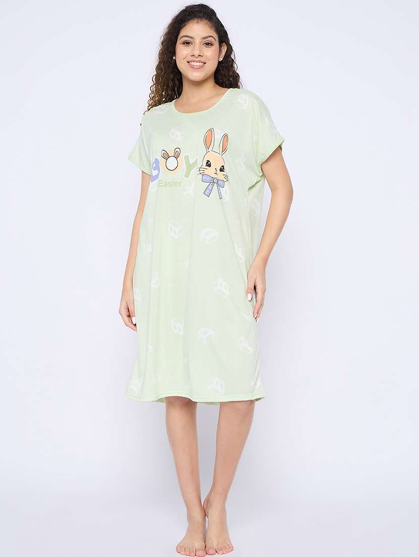 - » women printed round neck short sleeves sleepshirt