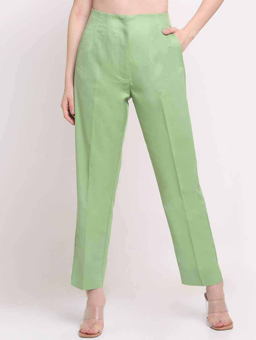 - » women solid pleated cigarette pants