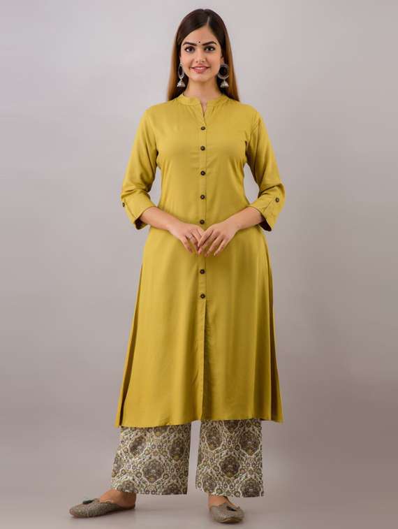 women solid three quarter sleeve kurta palazzo set - 19481754 - Very Small Image - 1