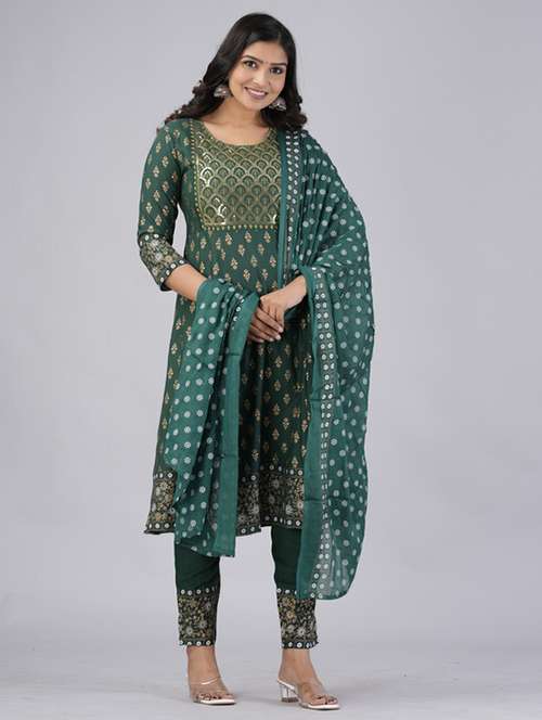 women three quarter sleeve kurta pant with dupatta set