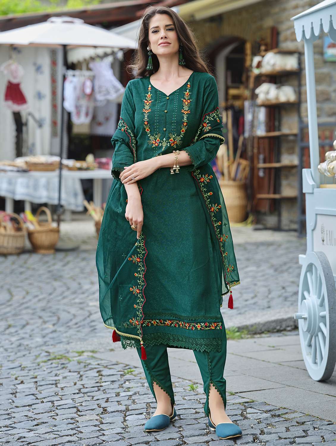 - Find gorgeous sets of ethnic wears in trending designs in green colors suitable for festive wear of occasions.