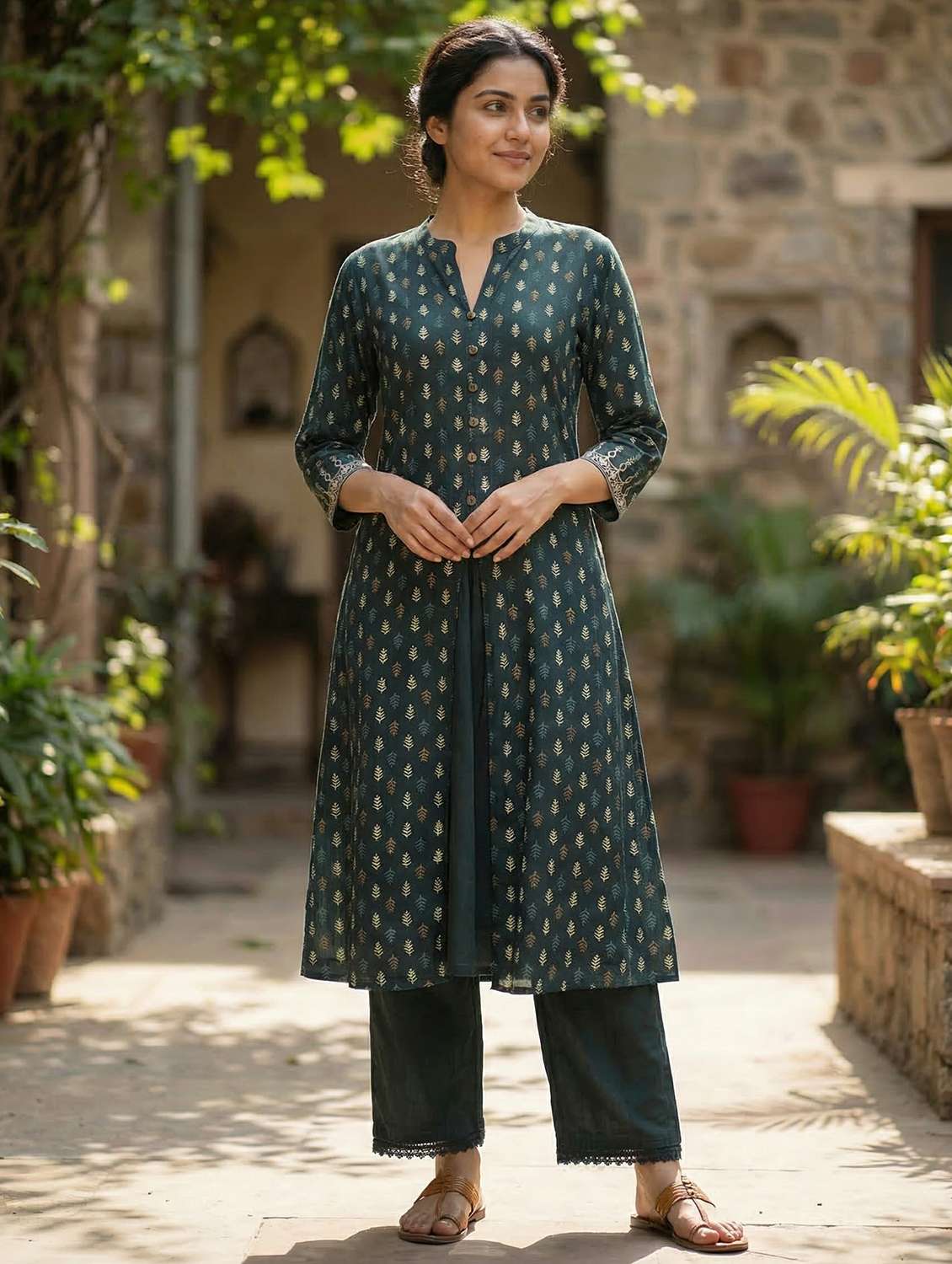 - Find gorgeous sets of ethnic wears in trending designs in green colors suitable for work wear of occasions.