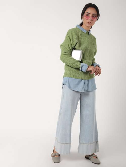 - » crew neck raglan sleeved wool blend pullover
