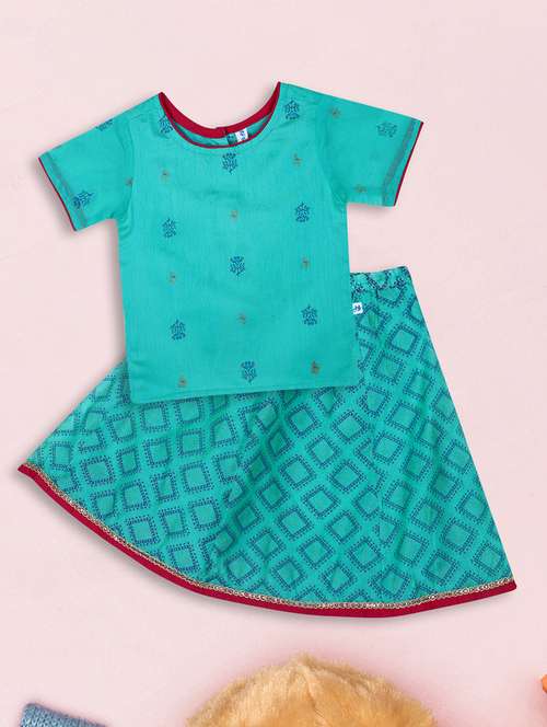 - » blue printed round neck skirt top set