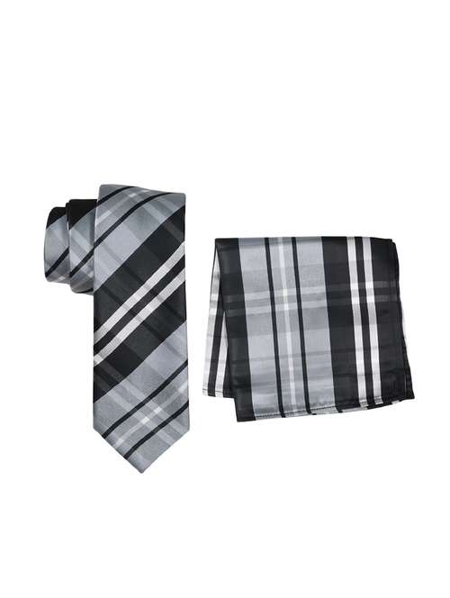 grey polyester tie and pocket square combo