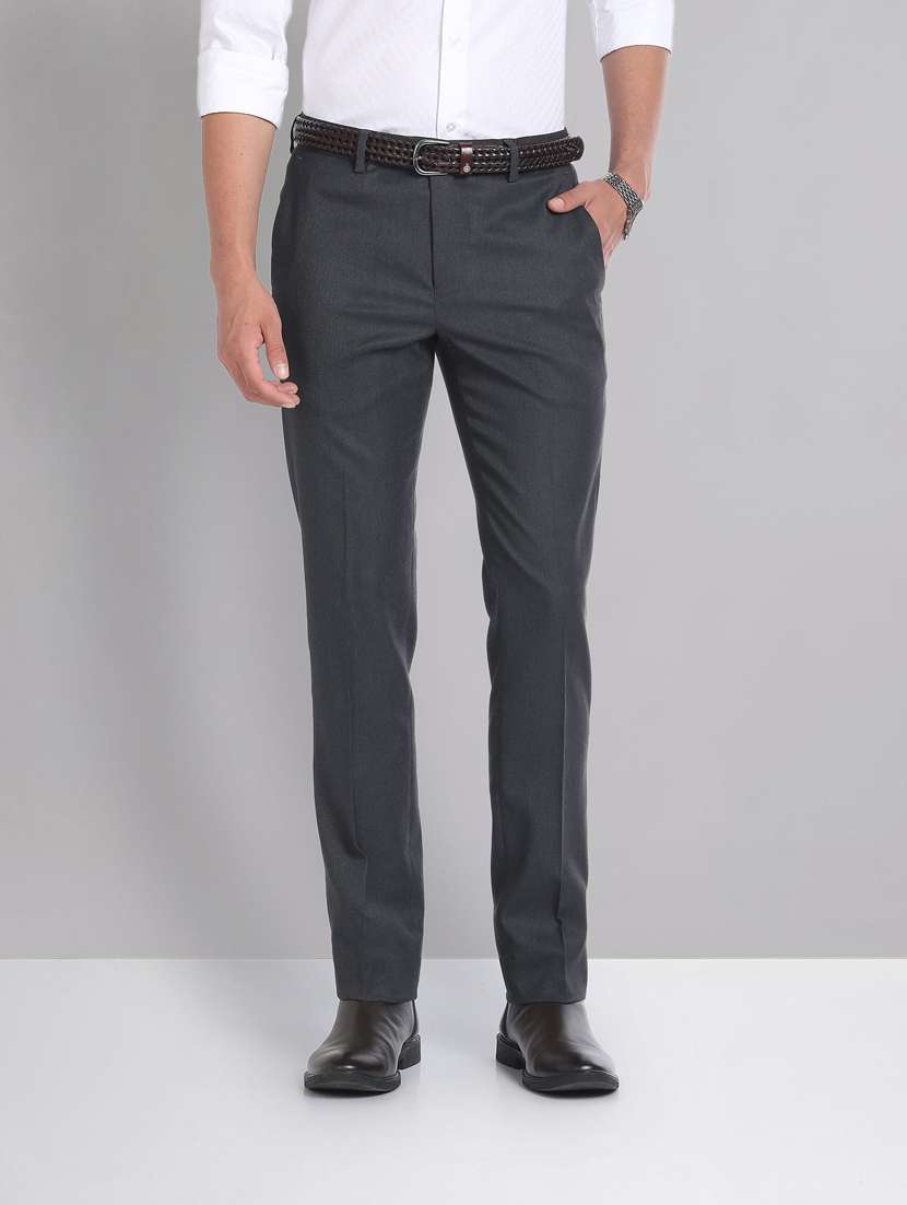 grey polyester flat front formal trouser