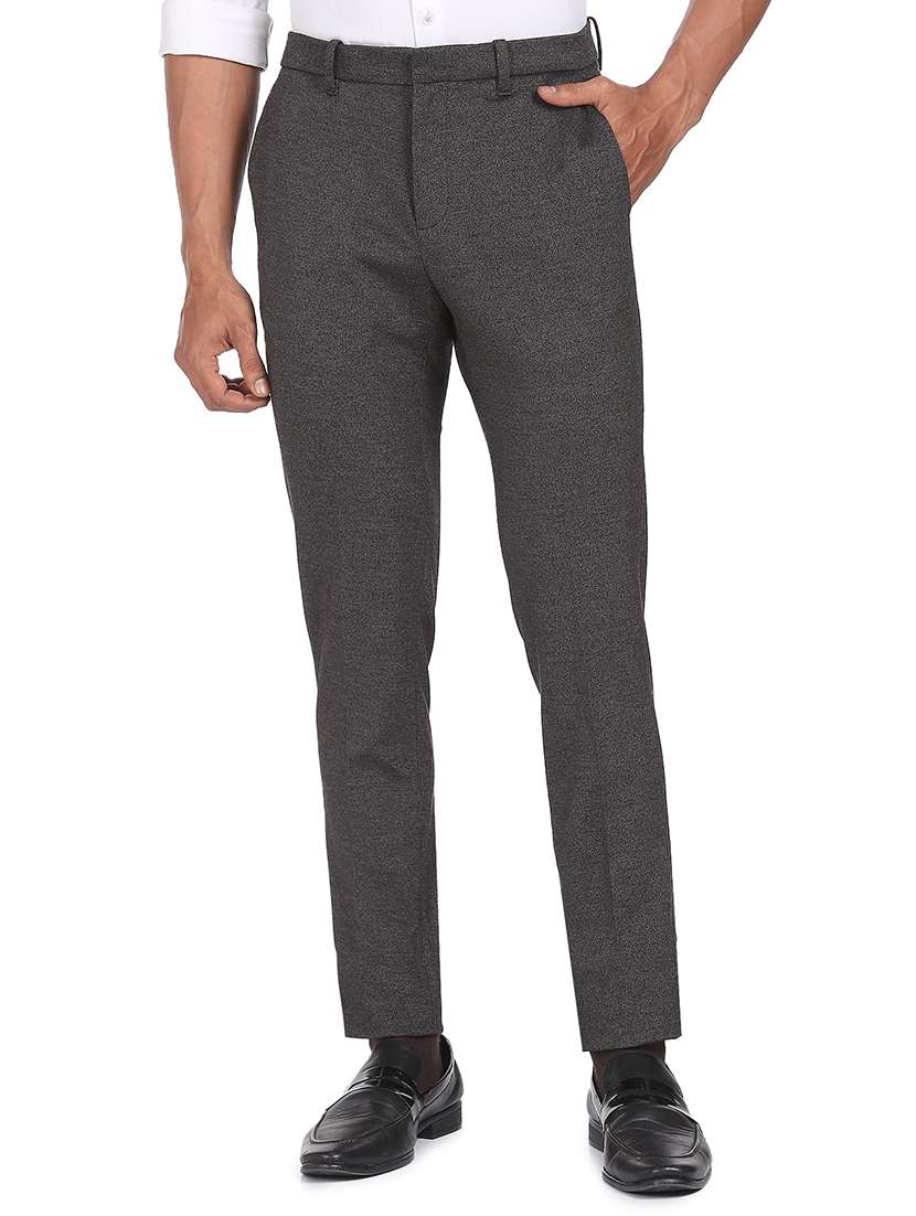 grey textured flat front formal trouser