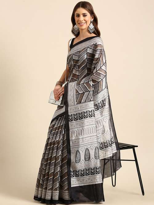 - » women's geometric grey colored saree with blouse