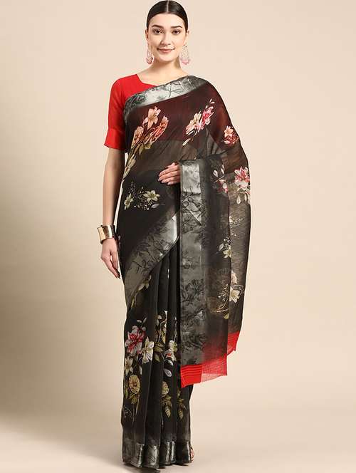 - » women grey floral printed saree with blouse