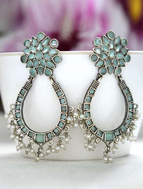- » white beads pattern handcrafted silver tone brass earrings