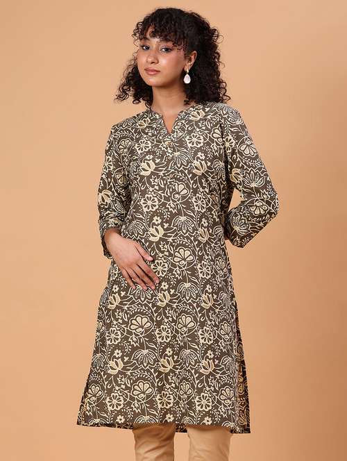 - Grab this beautiful kurta made up of cotton fabric featuring mandarin collar neck designs.