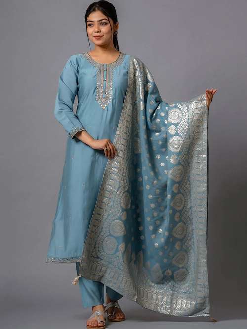 women three quarter sleeve kurta pant with dupatta set - 21971170 - Very Small Image - 1