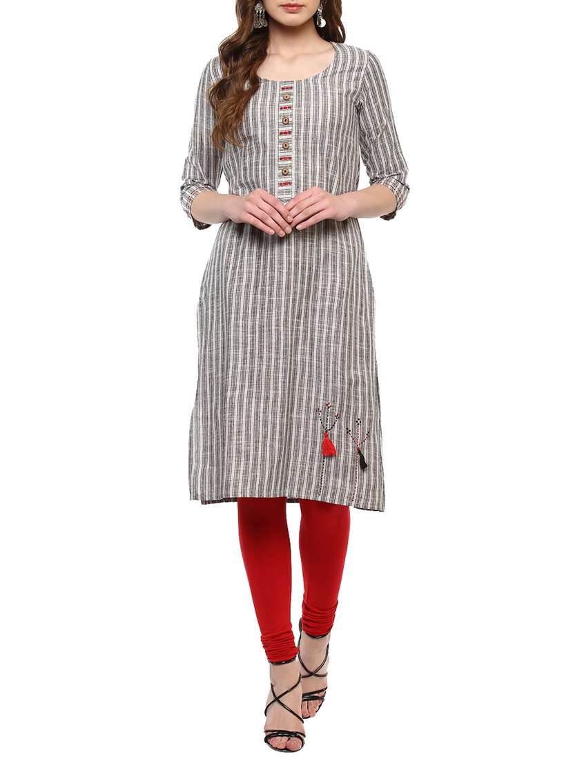 grey cotton straight kurta - 14877704 - Very Small Image - 1