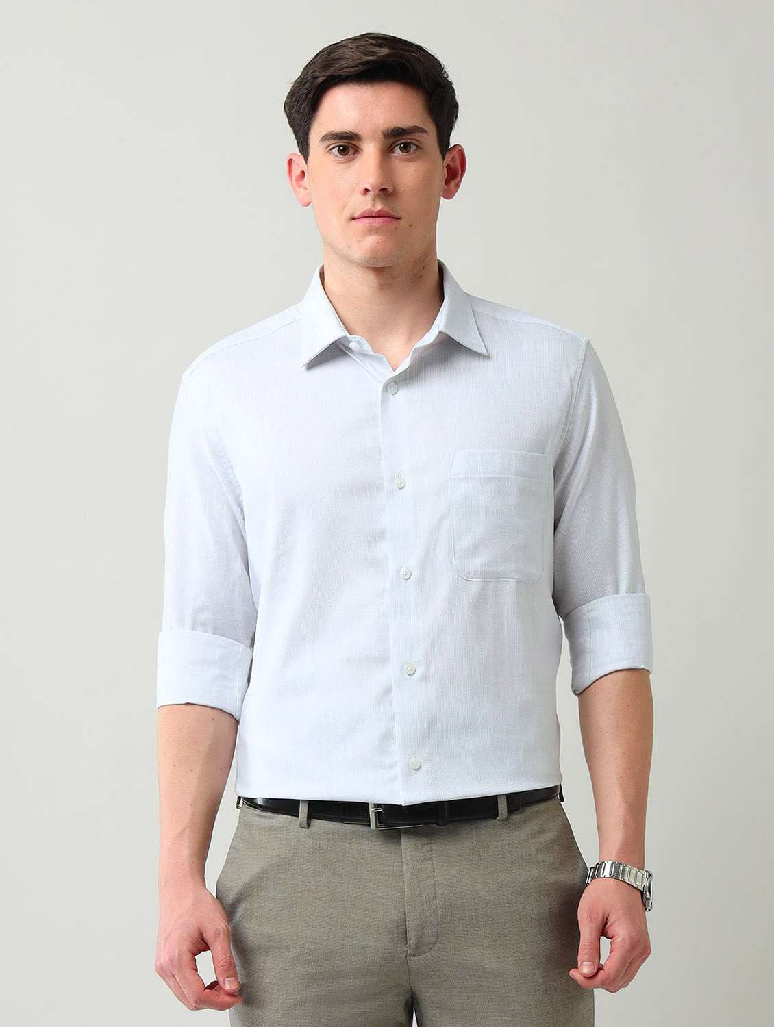men solid long sleeve slim fit casual shirt