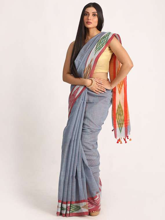 grey cotton handloom saree with blouse - 21241152 - Very Small Image - 1