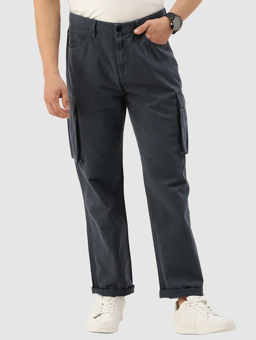 men solid charcoal cotton cargos casual trouser - 20397326 -  Standard Image - 1 men solid charcoal cotton cargos casual trouser - 20397326 -  Zoom Image - 1