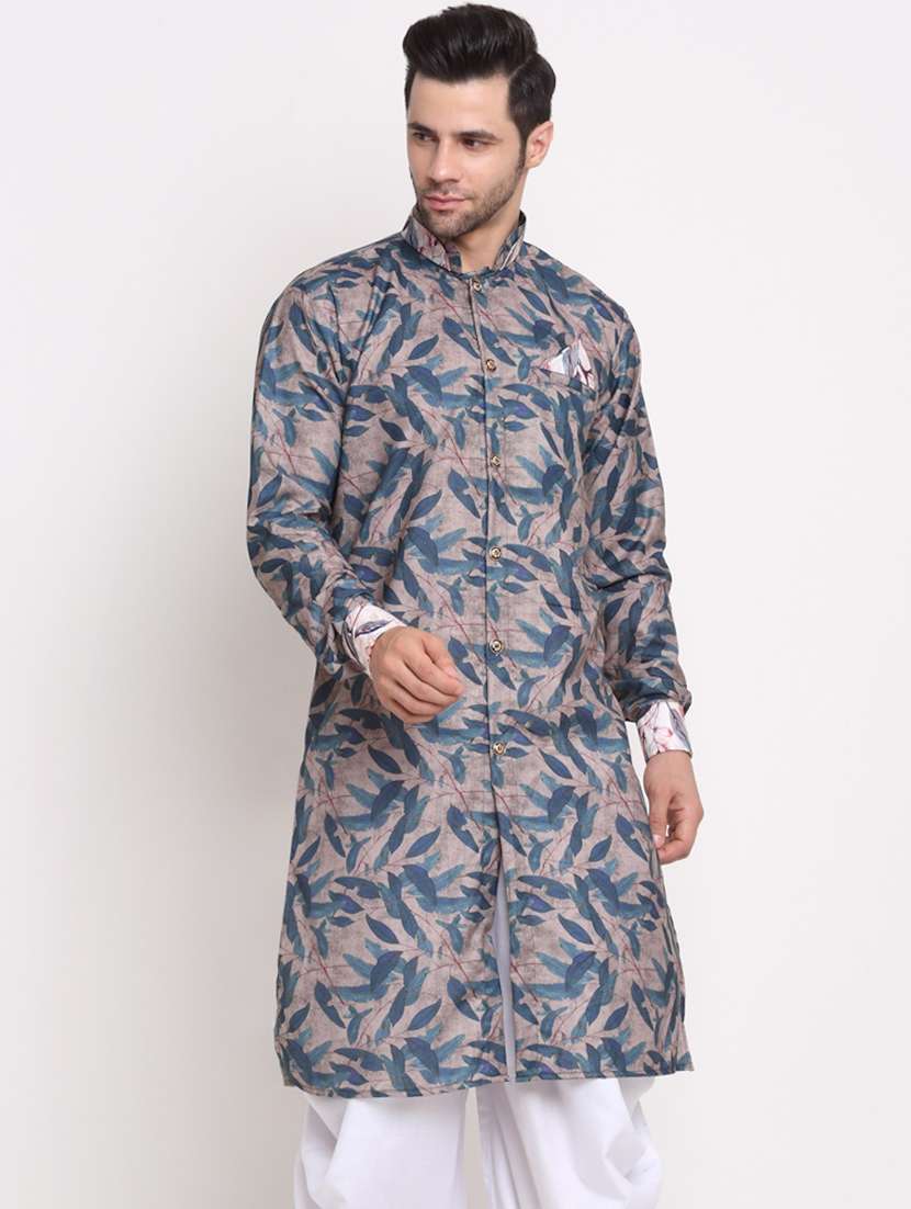 - » men grey printed long kurta