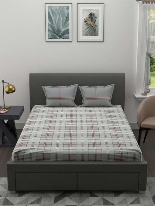 - » bianca soft 100% natural cotton double bedsheet with 2 pillow covers -3pc set (essenza) checks-grey