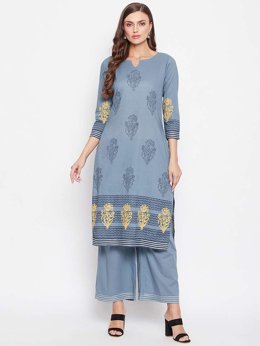 - » grey cotton kurta palazzo set