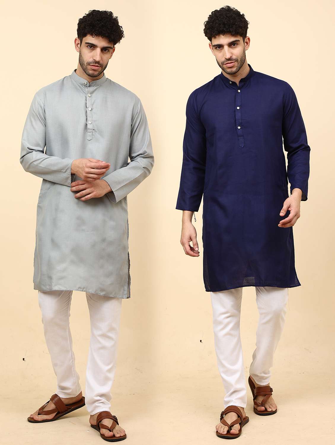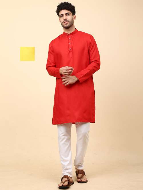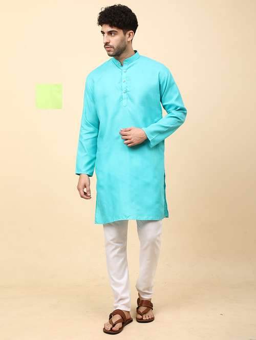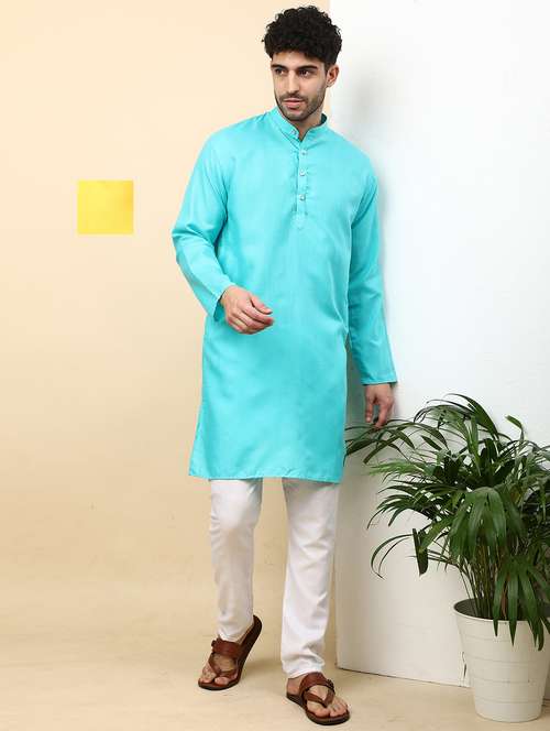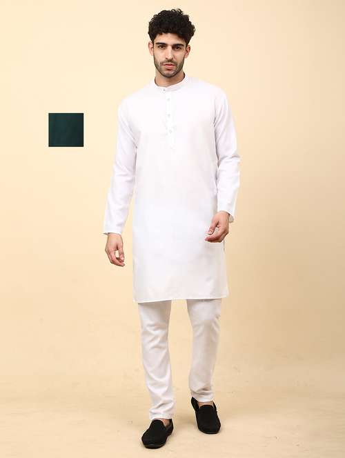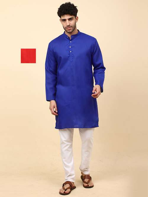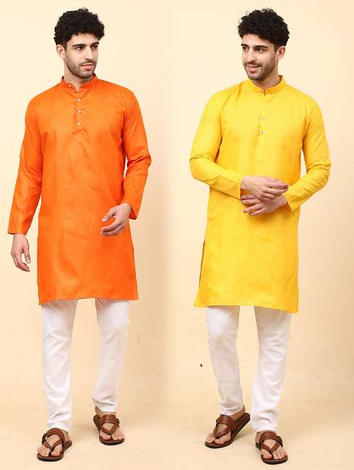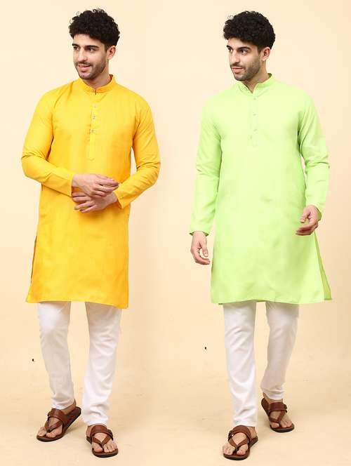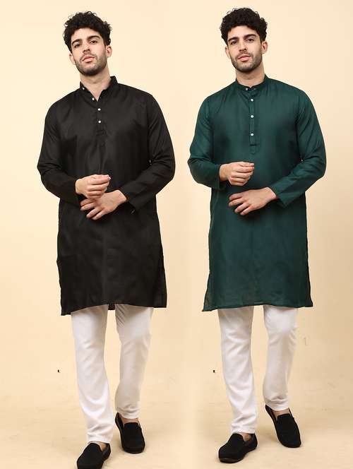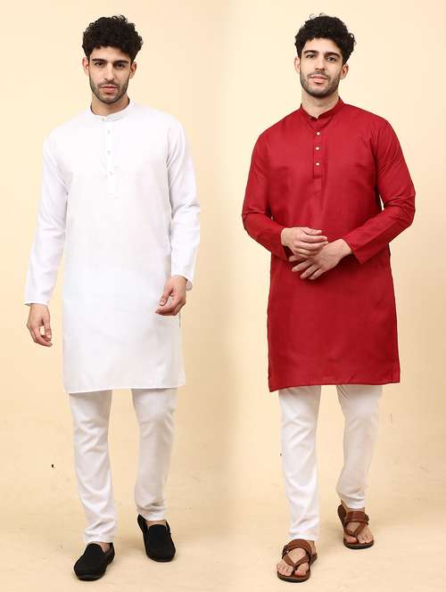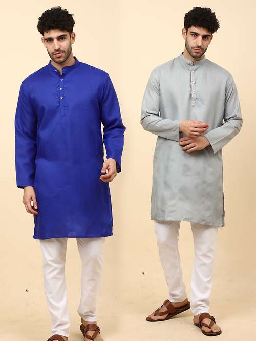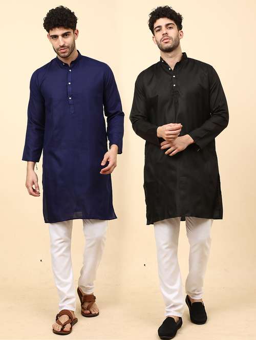Cotton Blend Kurta Pyjama Set For Men's Combo