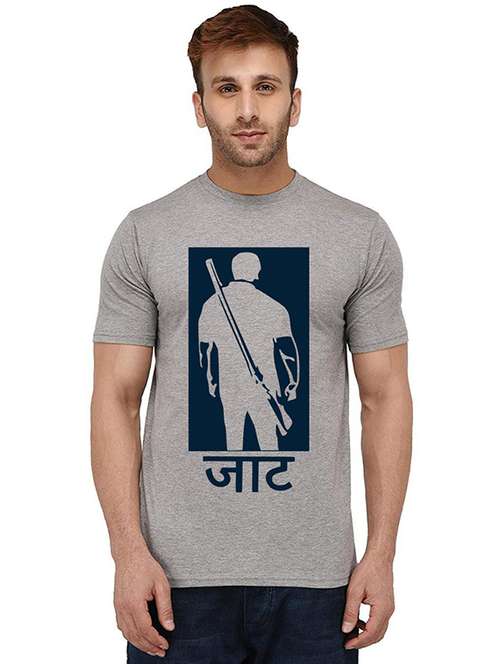 men round neck front print cotton t-shirt