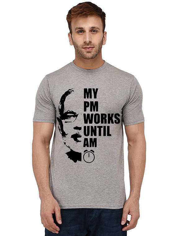 - » men round neck front print t-shirt