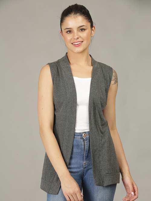 - » women solid sleeveless shrug