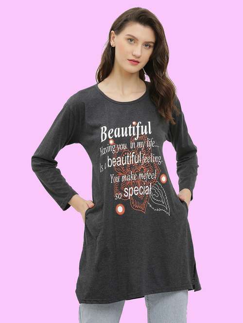 - » women round neck typographic printed regular t-shirt