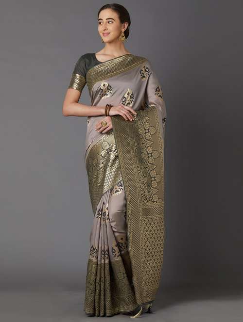 grey cotton blend banarasi saree
